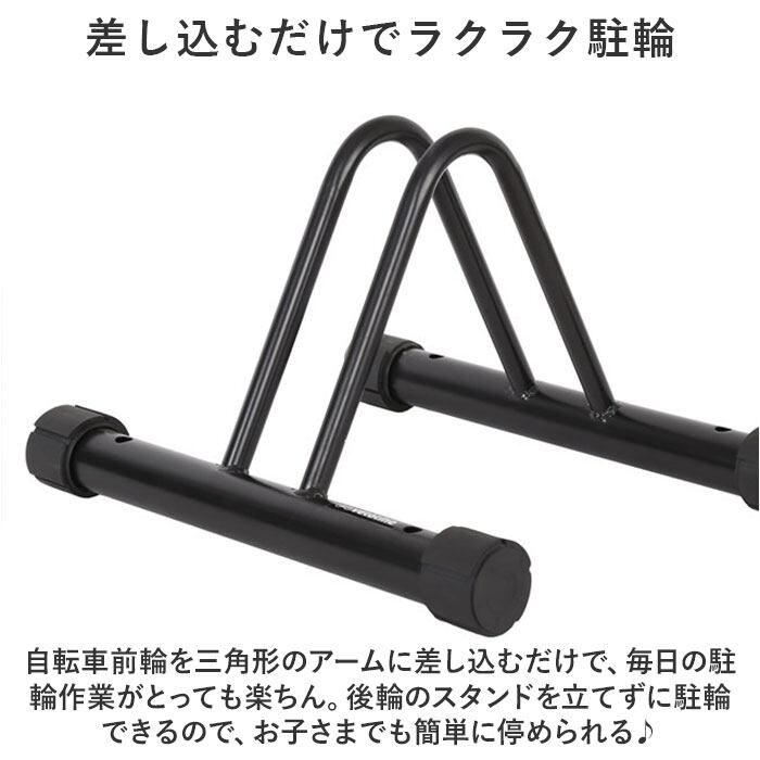 ・自転車前輪を三角形のアームに差し込むだけで、毎日の駐輪作業がとっても楽ちん。後輪のスタンドを立てずに駐輪できるので、お子さまでも簡単に停められる♪