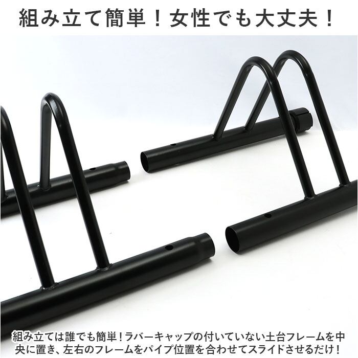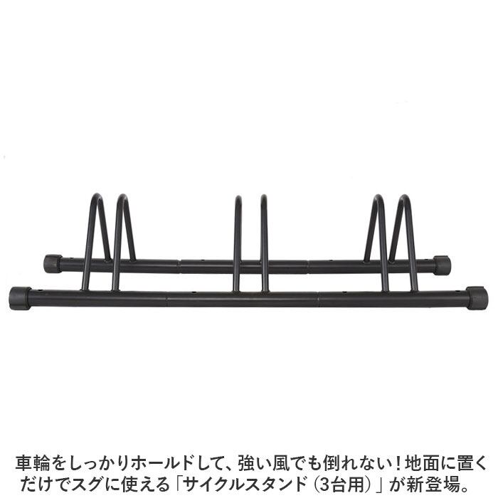 ・車輪をしっかりホールドして、強い風でも倒れない!地面に置くだけでスグに使える「サイクルスタンド(3台用)」が新登場。