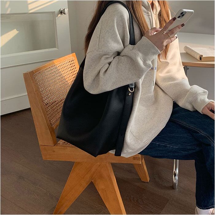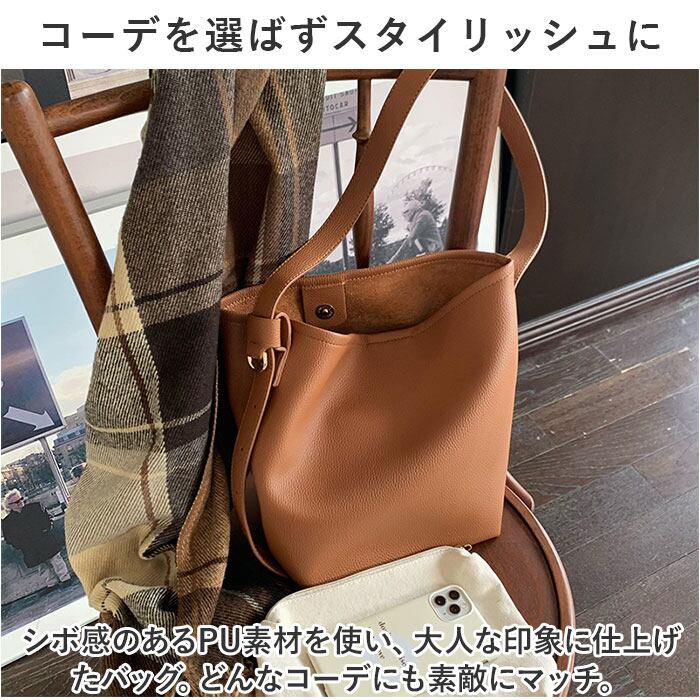 ・シボ感のあるPU素材を使い、大人な印象に仕上げたバッグ。どんなコーデにも素敵にマッチ。