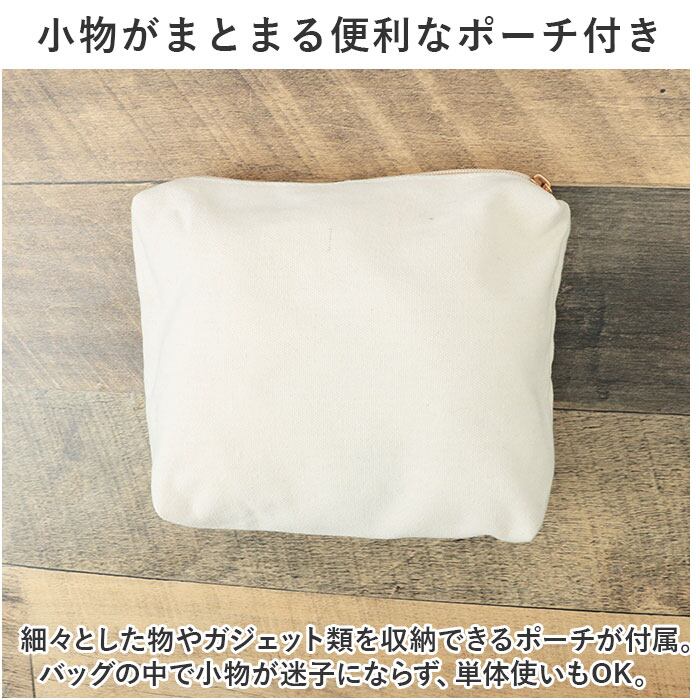 ・細々とした物やガジェット類を収納できるポーチが付属。バッグの中で小物が迷子にならず、単体使いもOK。