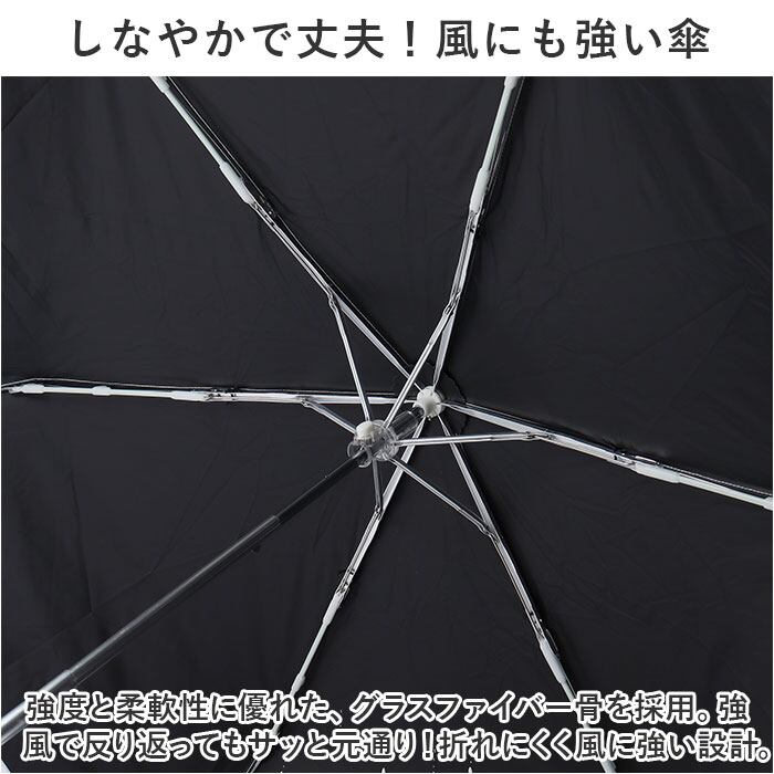 ・強度と柔軟性に優れた、グラスファイバー骨を採用。強風で反り返ってもサッと元通り!折れにくく風に強い設計。