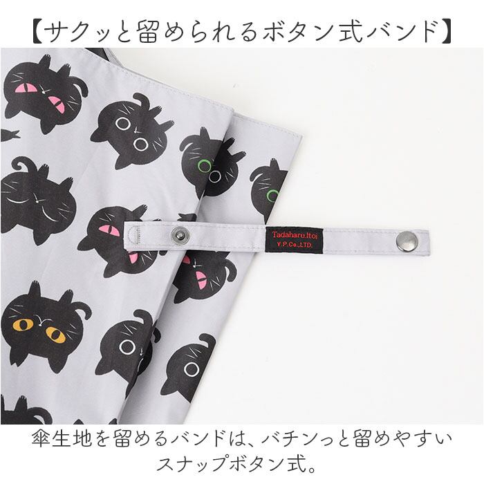 ・傘生地を留めるバンドは、バチンっと留めやすいスナップボタン式。