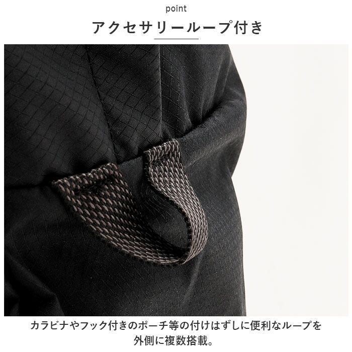 ・カラビナやフック付きのポーチ等の付けはずしに便利なループを外側に複数搭載。