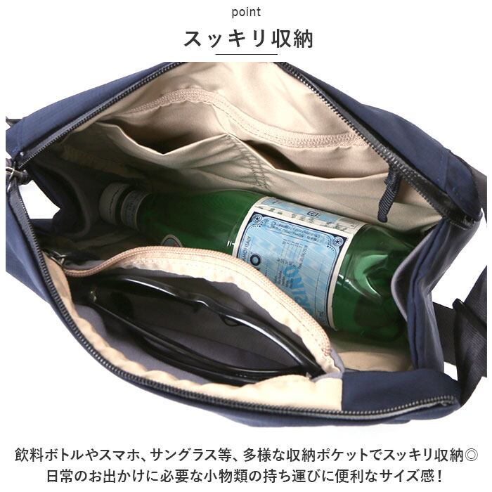 ・飲料ボトルやスマホ、サングラス等、多様な収納ポケットでスッキリ収納◎日常のお出かけに必要な小物類の持ち運びに便利なサイズ感!