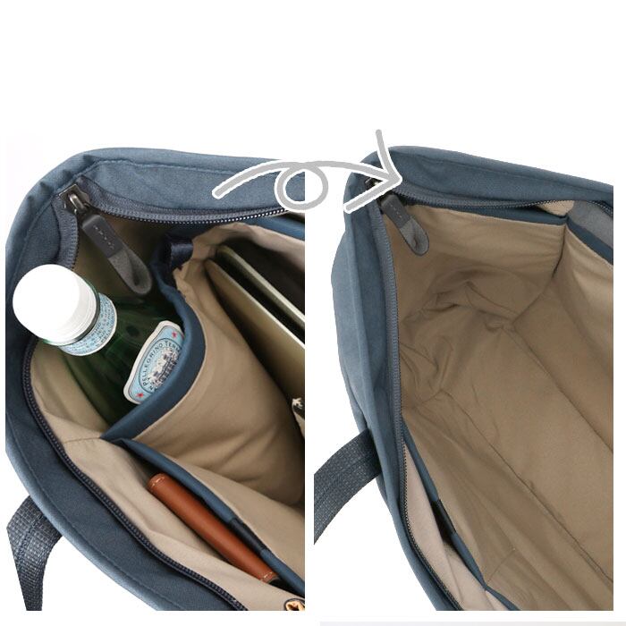 ・さらに両サイドは、飲料ボトルやシューズ、折りたたみ傘などが収納できるポップアップポケットになっており、不要時はトートの側面に隠せるのがポイント!