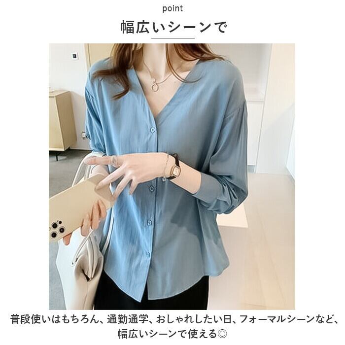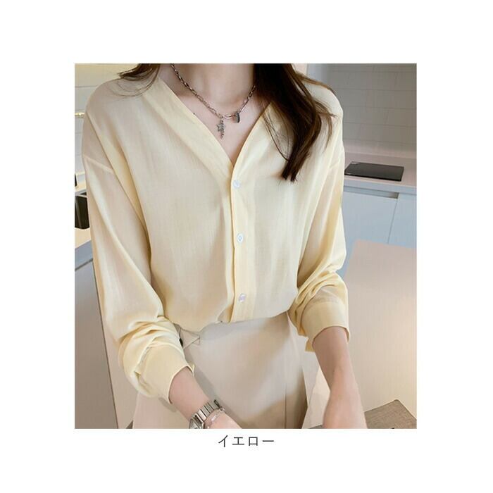 ブラウス レディース 長袖 通販 シャツ Vネック 薄手 ゆったり ボタン オフィス 韓国 トップス シンプル ナチュラル カジュアル 通学 通勤 おしゃれ かわいい