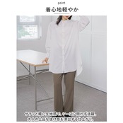 ・裾部分にスリットを入れ、上下の丈感に差を出した長めのつくり。1枚でパンツと合わせたり、レイヤードコーデやサッと羽織るのもOK。低身長さんはショートパンツと合わせて、シャツワンピース風に。(※透け感があるので、ご注意ください。)