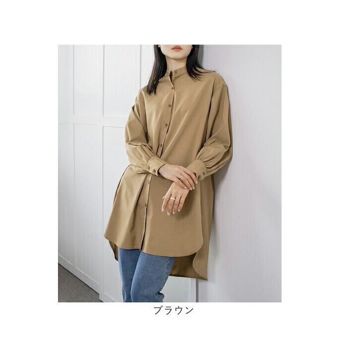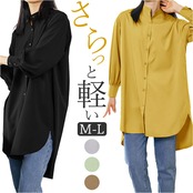 チュニック ブラウス レディース 通販 チュニックブラウス シャツ 羽織 羽織り 長袖 ロング ラウンドヘム スリット 薄手 ゆったり 体型カバー カジュアル 無地 シンプル 大人 トップス