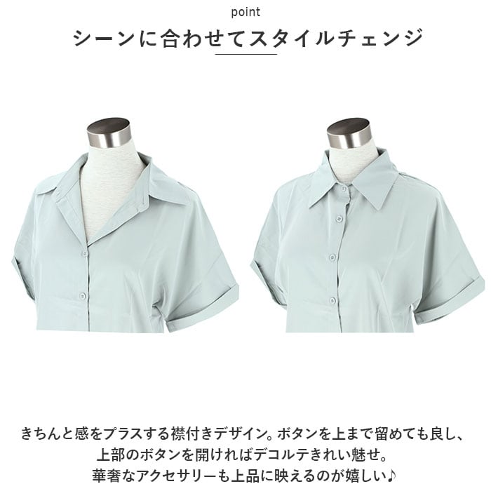 ・きちんと感をプラスする襟付きデザイン。ボタンを上まで留めても良し、上部のボタンを開ければデコルテきれい魅せ。華奢なアクセサリーも上品に映えるのが嬉しい♪