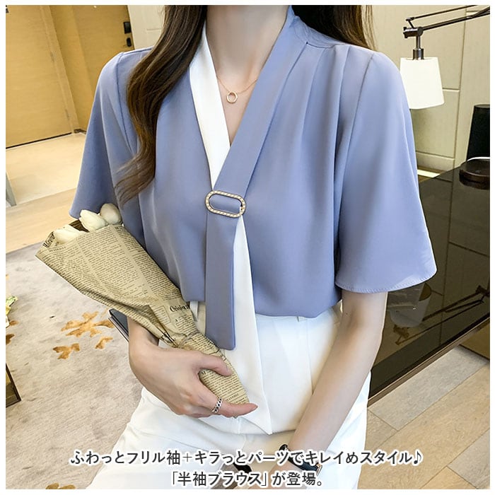 ・ふわっとフリル袖+キラっとパーツでキレイめスタイル♪「半袖ブラウス」が登場。
