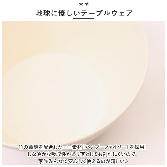 ・竹の繊維を配合したエコ素材「バンブーファイバー」を採用!しなやかな吸収性があり落としても割れにくいので、家族みんなで安心して使えるのが嬉しい♪