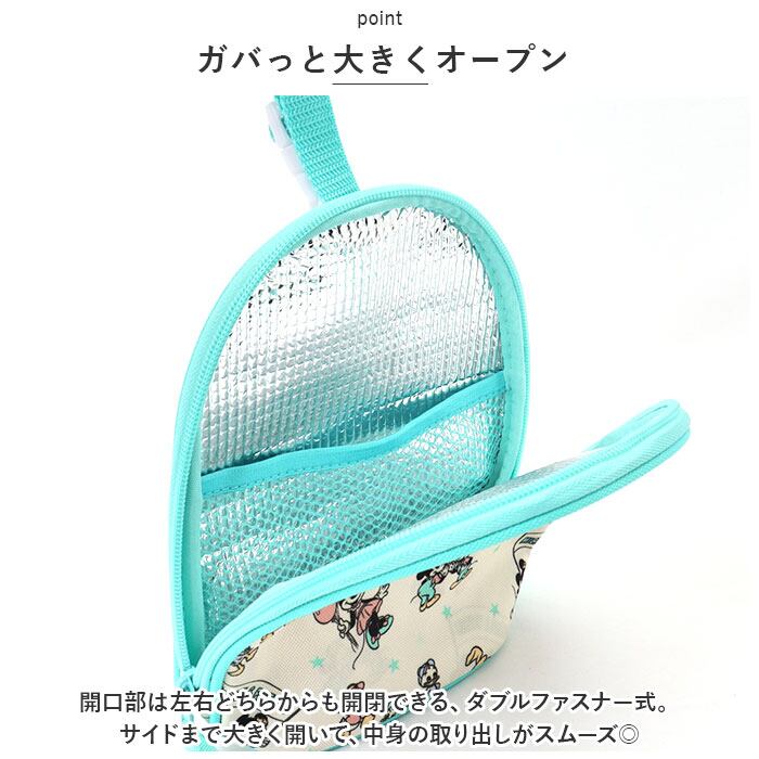 ・内側はアルミ蒸着フィルム仕様。保温・保冷効果があり、マグ以外にもガーゼやおやつなどの小物もIN♪外出に必要なものをまとめておけるのが嬉しい!