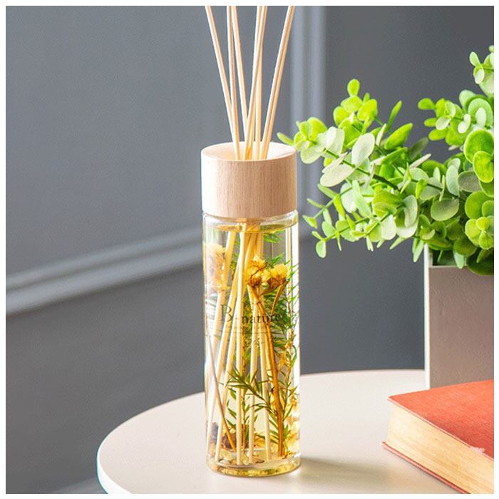 ・ボトルの栓を外し、スティックを挿入するだけ。スティックの本数で香りの強さを調節可能。芳香期間は約4ヶ月。(※使用環境などにより異ります。)