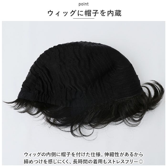 ・ウィッグの内側に帽子を付けた仕様。伸縮性があるから締めつけを感じにくく、長時間の着用もストレスフリー◎