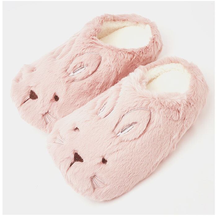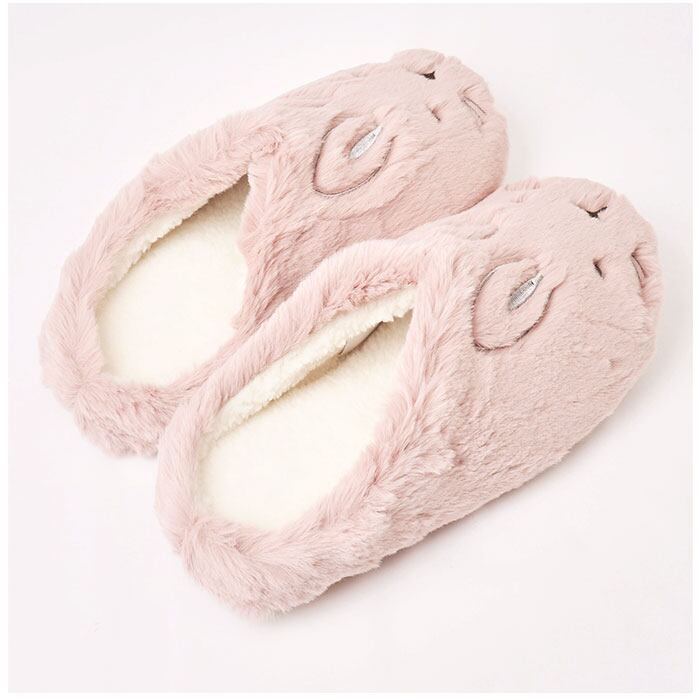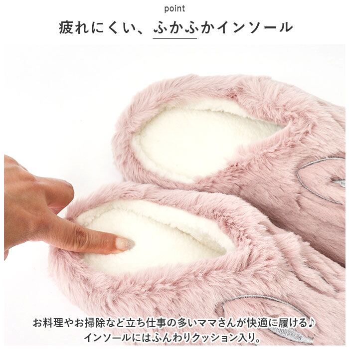 ・スリッパの表生地は、まるでペットの毛並みのようなフェイクファー。そっと撫でているだけでうっとり夢心地の肌触り。