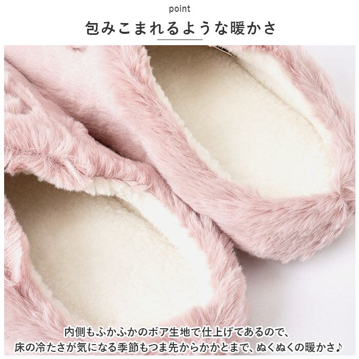 ・内側もふかふかのボア生地で仕上げてあるので、床の冷たさが気になる季節もつま先からかかとまで、ぬくぬくの暖かさ♪