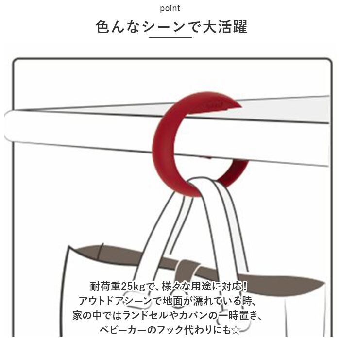 ・耐荷重25kgで、様々な用途に対応!アウトドアシーンで地面が濡れている時、家の中ではランドセルやカバンの一時置き、ベビーカーのフック代わりにも☆
