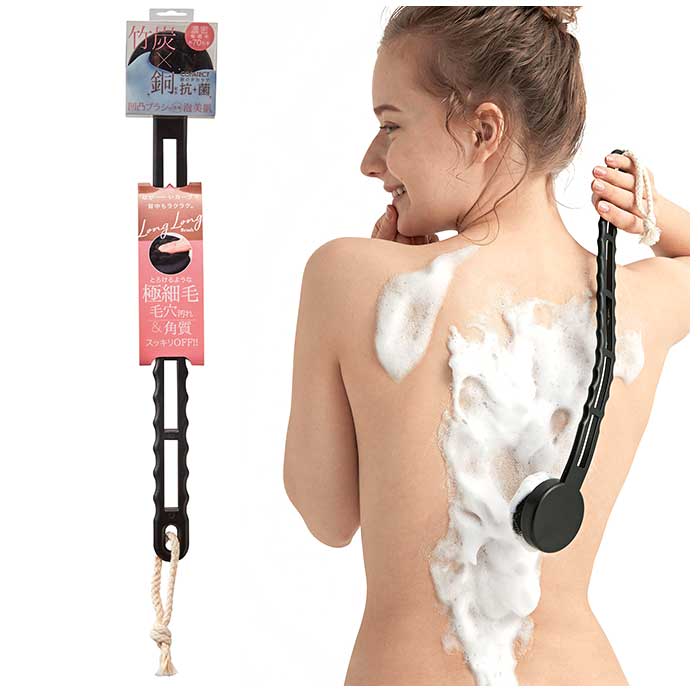 ・なが-いカーブで、背中もらくらくウォッシュ!ソフトな洗い心地がクセになる「竹炭ロングボディブラシ」が新登場。