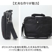 ・ポリエステル生地を使用した丈夫な作りが魅力。ハードに働くビジネスマンの味方。