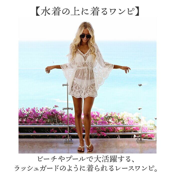 ・ビーチやプールで大活躍する、ラッシュガードのように着られるレースワンピ。