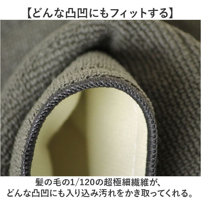 ・髪の毛の1/120の超極細繊維が、どんな凸凹にも入り込み汚れをかき取ってくれる。