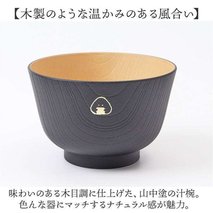 ・味わいのある木目調に仕上げた、山中塗の汁椀。色んな器にマッチするナチュラル感が魅力。
