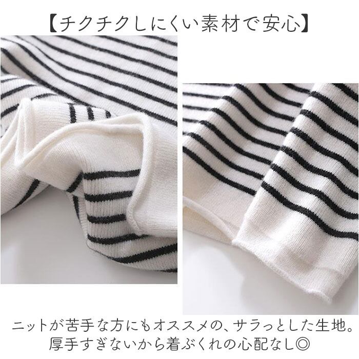 ・ニットが苦手な方にもオススメの、サラっとした生地。厚手すぎないから着ぶくれの心配なし◎
