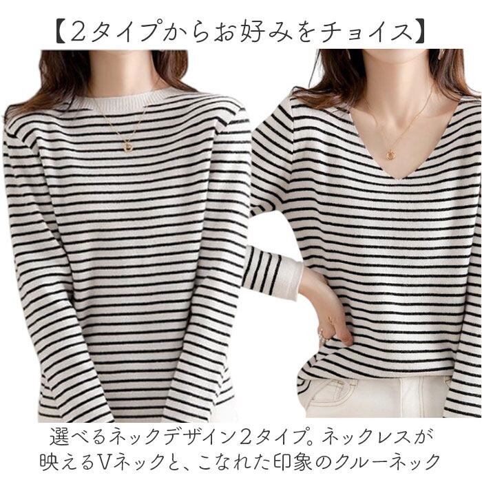 ・選べるネックデザイン2タイプ。ネックレスが映えるVネックと、こなれた印象のクルーネック