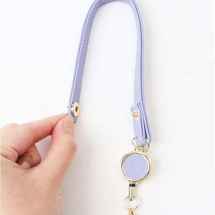 ・ストラップは着脱しやすい、スナップボタンタイプ。バッグのハンドルなどにくるっと装着。