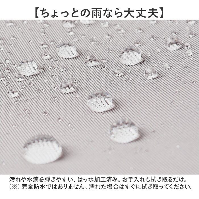 ・汚れや水滴を弾きやすい、はっ水加工済み。お手入れも拭き取るだけ。