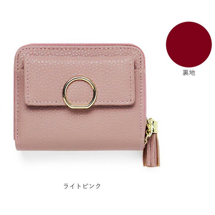 ・マットな質感にゴールドの金具使いがアクセント。フロントのリングデザインやタッセルチャームの引き手もおしゃれ♪