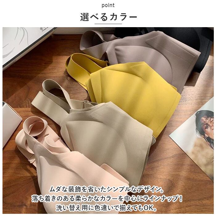 ・薄手の生地感&軽量設計。縫い目も少なくお肌に馴染んで、トップスにも響きにくい!ストラップは肩に食い込みにくい幅広タイプ。