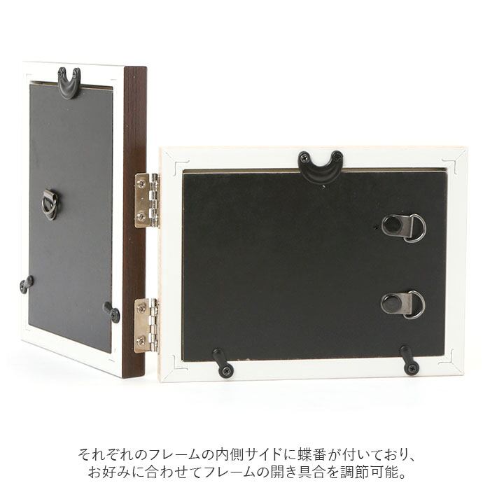 ・それぞれのフレームの内側サイドに蝶番が付いており、お好みに合わせてフレームの開き具合を調節可能。