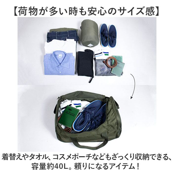 ・着替えやタオル、コスメポーチなどもざっくり収納できる、容量約40L。頼りになるアイテム!