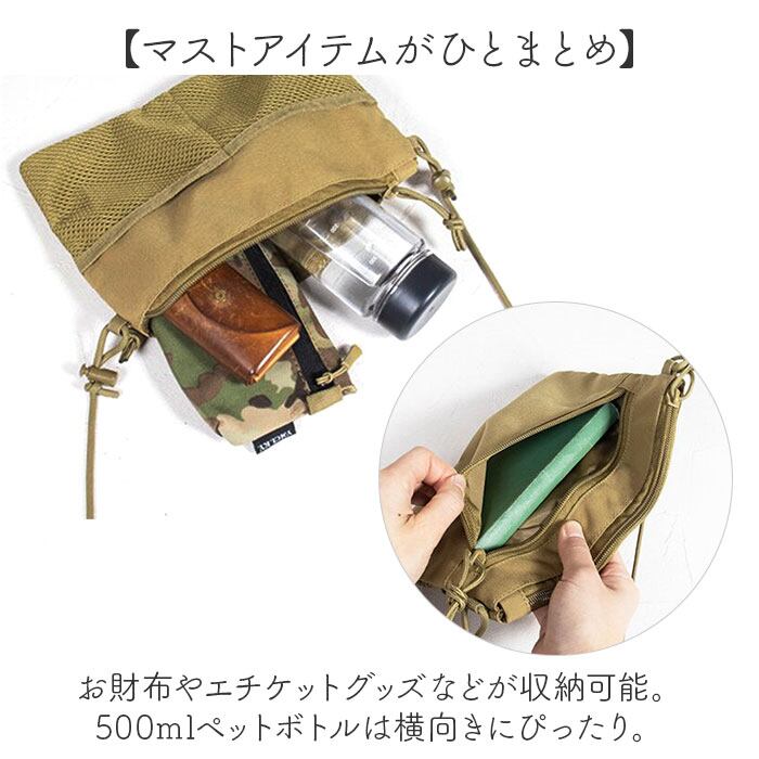 ・性別問わず持ちやすいミリタリーサコッシュ。お揃いやシェアもおすすめ☆