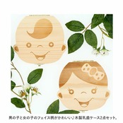 ・男の子と女の子のフェイス柄がかわいい♪木製乳歯ケース2点セット。