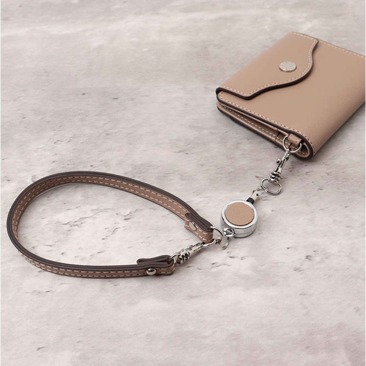 ・バッグのハンドルなどにくるっと装着。手持ちする際は手首に掛けて、紛失を防止。