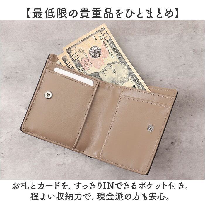 ・お札とカードを、すっきりINできるポケット付き。程よい収納力で、現金派の方も安心。