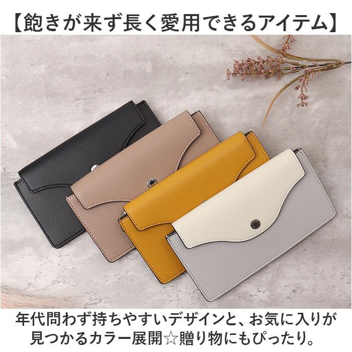 ・開口部はスナップボタン式のフラップ。出し入れしやすく、シンプルなお財布のアクセントにも♪