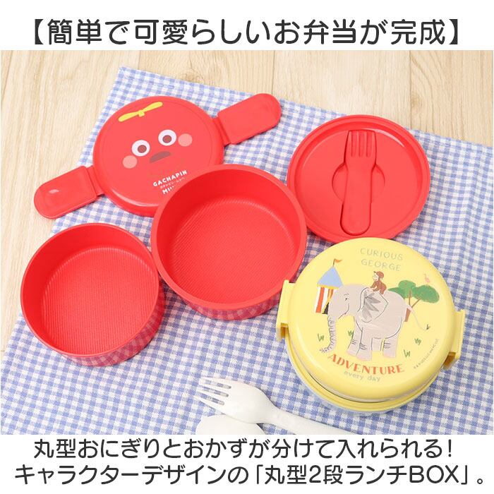 ・丸型おにぎりとおかずが分けて入れられる!キャラクターデザインの「丸型2段ランチBOX」。
