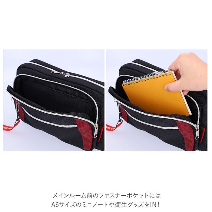 ・メインルーム前のファスナーポケットにはA6サイズのミニノートや衛生グッズをIN!