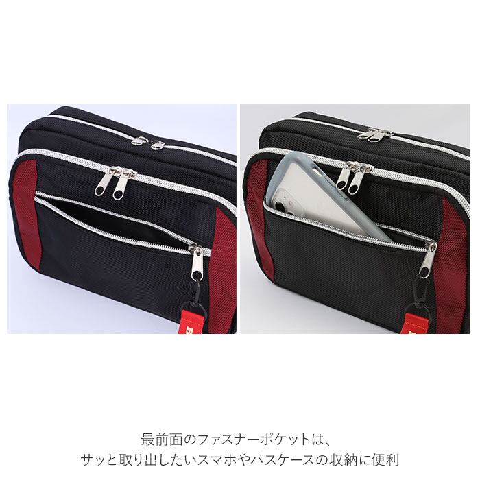 ・最前面のファスナーポケットは、サッと取り出したいスマホやパスケースの収納に便利。