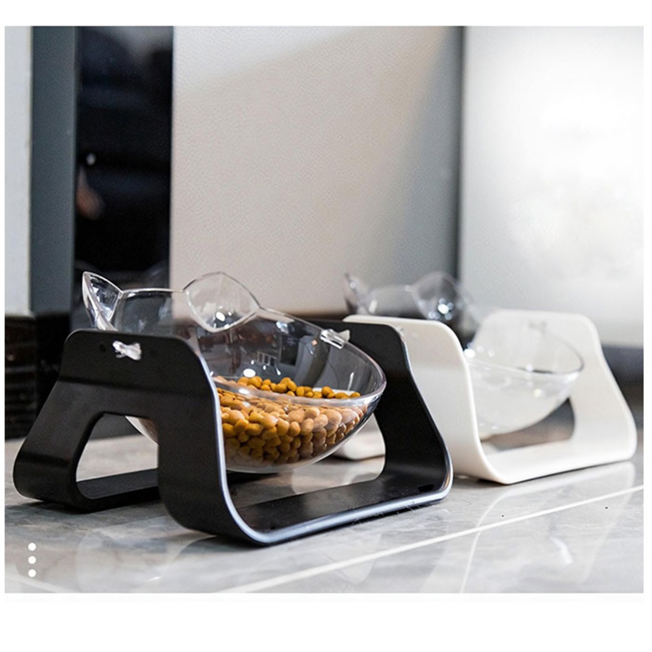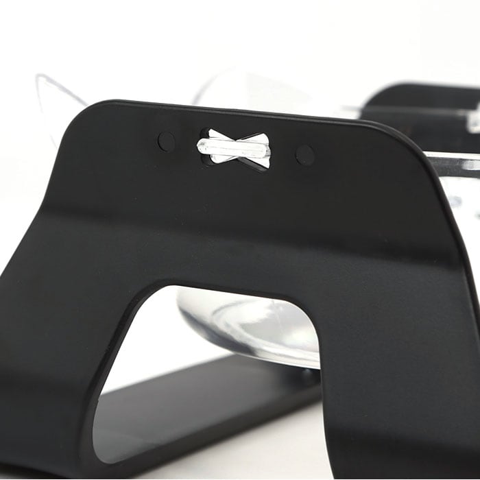 ・透明なボウルが宙に浮かんだようなデザインは、外観がオシャレなだけでなく、ネコちゃんが大きく首を傾けなくても食べやすいように工夫された形状。シニアのネコちゃんや病気で治療中の愛猫にもぴったり。