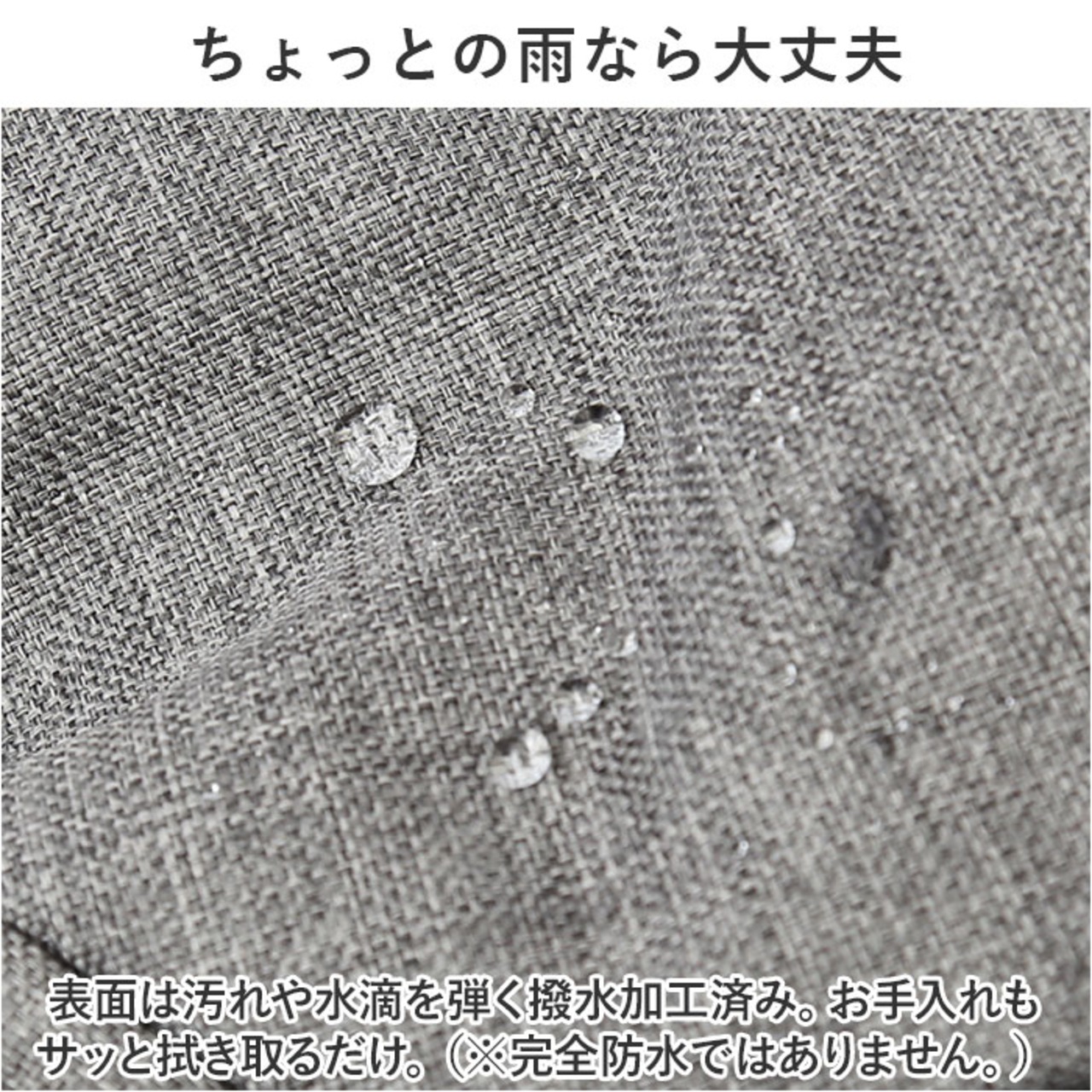 ・表面は汚れや水滴を弾く撥水加工済み。お手入れもサッと拭き取るだけ。(※完全防水ではありません。)
