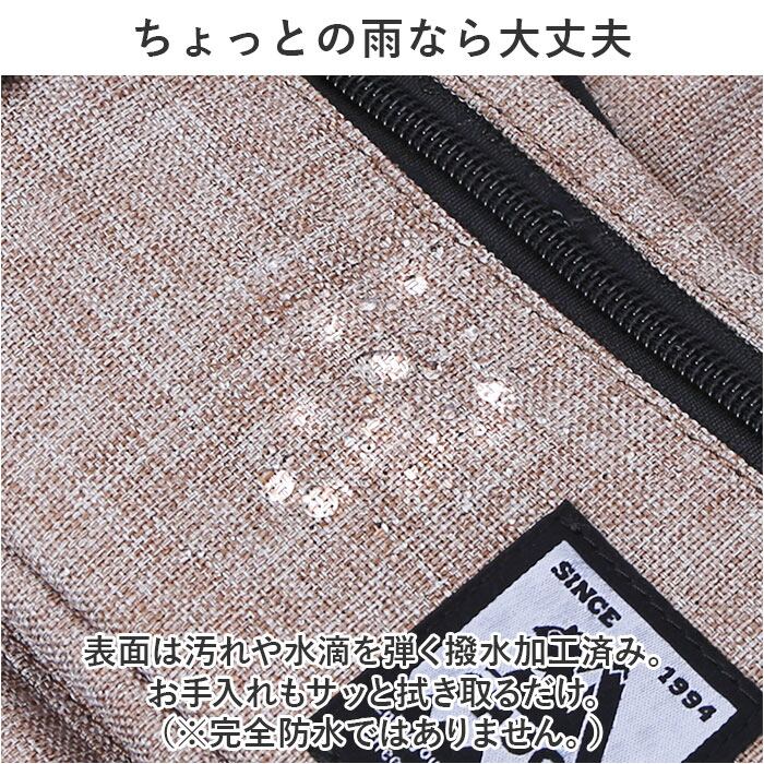 ・表面は汚れや水滴を弾く撥水加工済み。お手入れもサッと拭き取るだけ。(※完全防水ではありません。)
