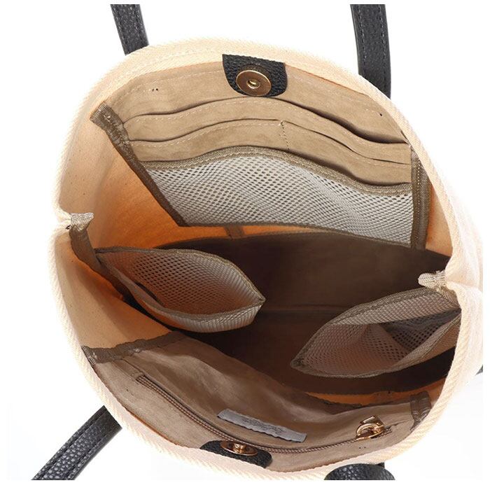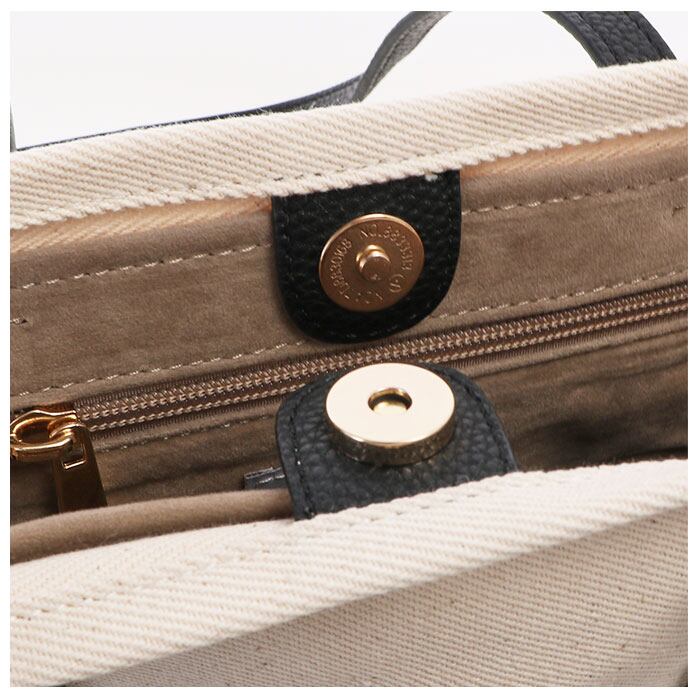 ・素材はキャンバス生地とフェイクレザーの異素材ミックス。上品かつこなれたお洒落が楽しめる♪