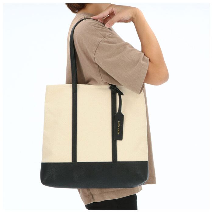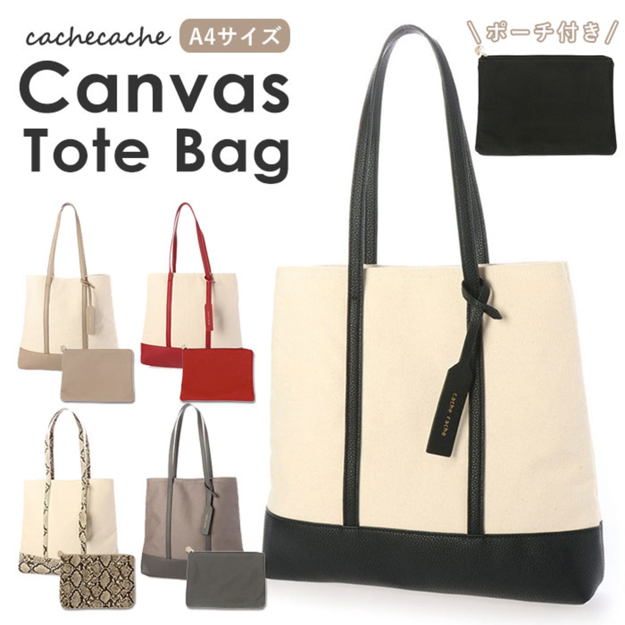 カシュカシュ バッグ 通販 トートバッグ トート キャンバス 縦型キャンバスキャリートートバッグ 通勤 通学 ママバッグ 小さめ ポーチ付き コットン 合皮 コンビ 整理 仕分け おしゃれ シンプル 無地 大人 かわいい 上品 きれいめ cache cache 69260