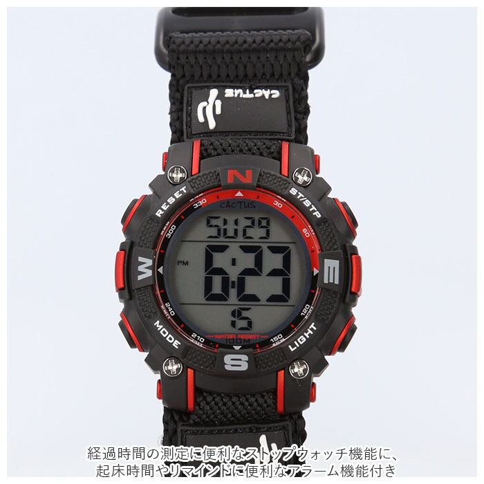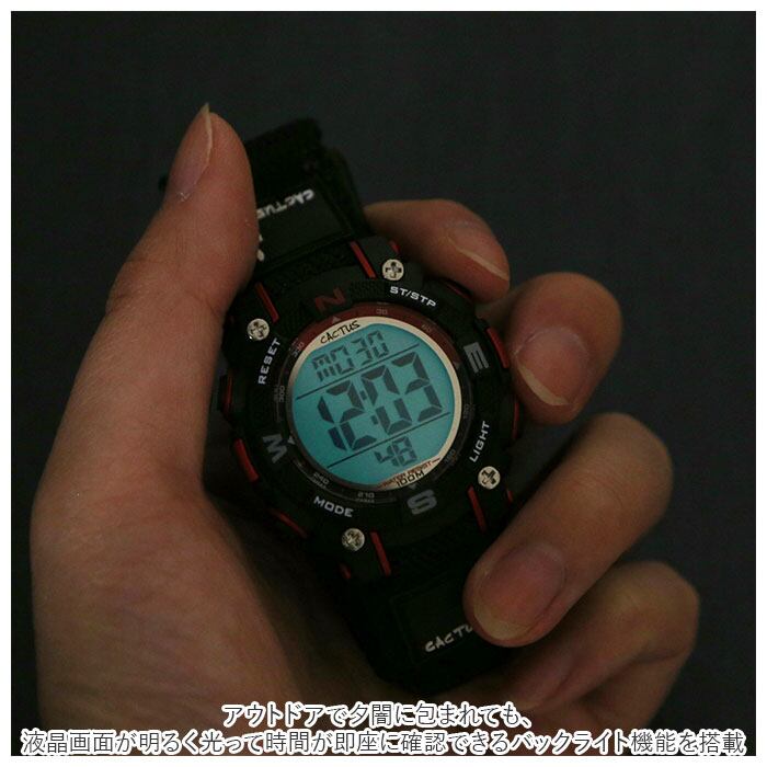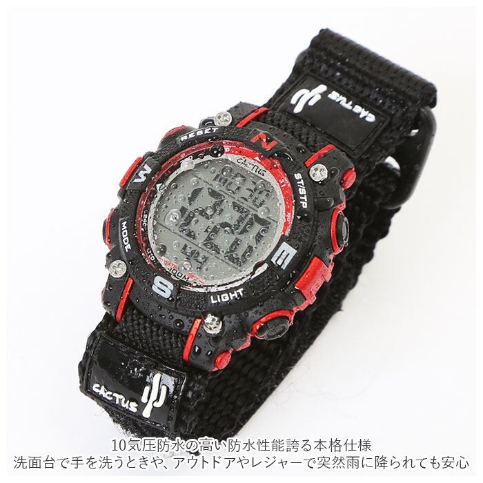 時計 キッズ カクタス CAC-104 通販 腕時計 デジタル デジタル時計 リストウォッチ 子供 子ども 男の子 女の子 子供用 小学生 防水 10気圧防水 面ファスナー バックライト おしゃれ シンプル 子供用ファッション小物 子ども用ファッション小物