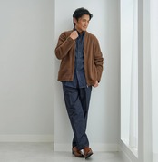 ・襟もとは、少し厚みのある生地とVネックのデザインで、大人の男性らしい印象に。