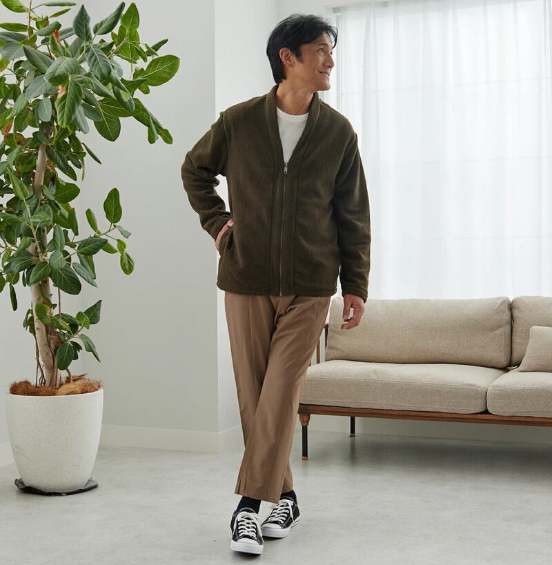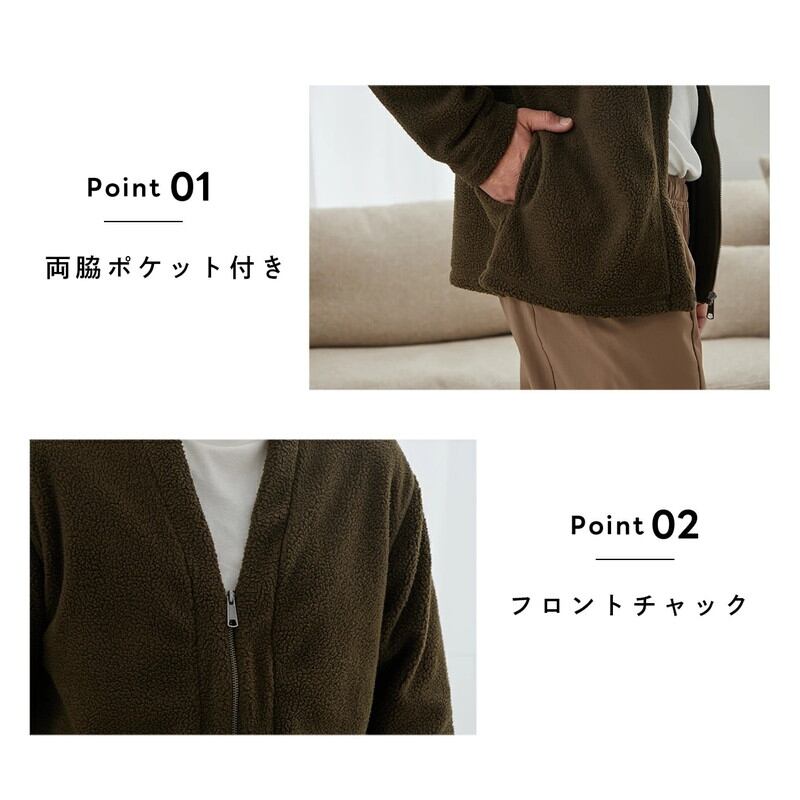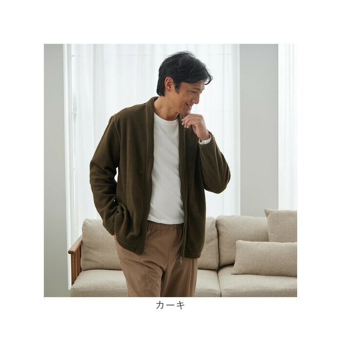 ・柔らかくて動きやすい素材なので、ちょこっと外に出るとも気軽に羽織っていける、ライトボアカーディガンです。